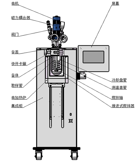 產(chǎn)品功能和特點:升降型式,機電一體化設(shè)計、結(jié)構(gòu)緊湊;框架支撐結(jié)構(gòu),配腳輪方便移動;主體可快開設(shè)計,開閉釜操作方便、快捷;升降輔助機構(gòu)方便操作,手動/電動可選;高扭矩磁力傳動,配優(yōu)選電機,提升運行穩(wěn)定性;攪拌支持定制槳葉類型,適配多樣化攪拌需求;加熱爐傳熱快,均熱效果好,效率可調(diào);真彩色觸控屏,模塊化顯示,控制界面操作簡潔;支持遠程控制,具備RS485通訊口,配上位機軟件;可顯示工作時間/溫度/轉(zhuǎn)速/壓力,PID自整定控溫精準;具備安全連鎖功能,超溫超壓報警;具備數(shù)據(jù)采集,記錄以及報表導出功能;支持選配加料、計量、取樣、冷凝等擴展功能。